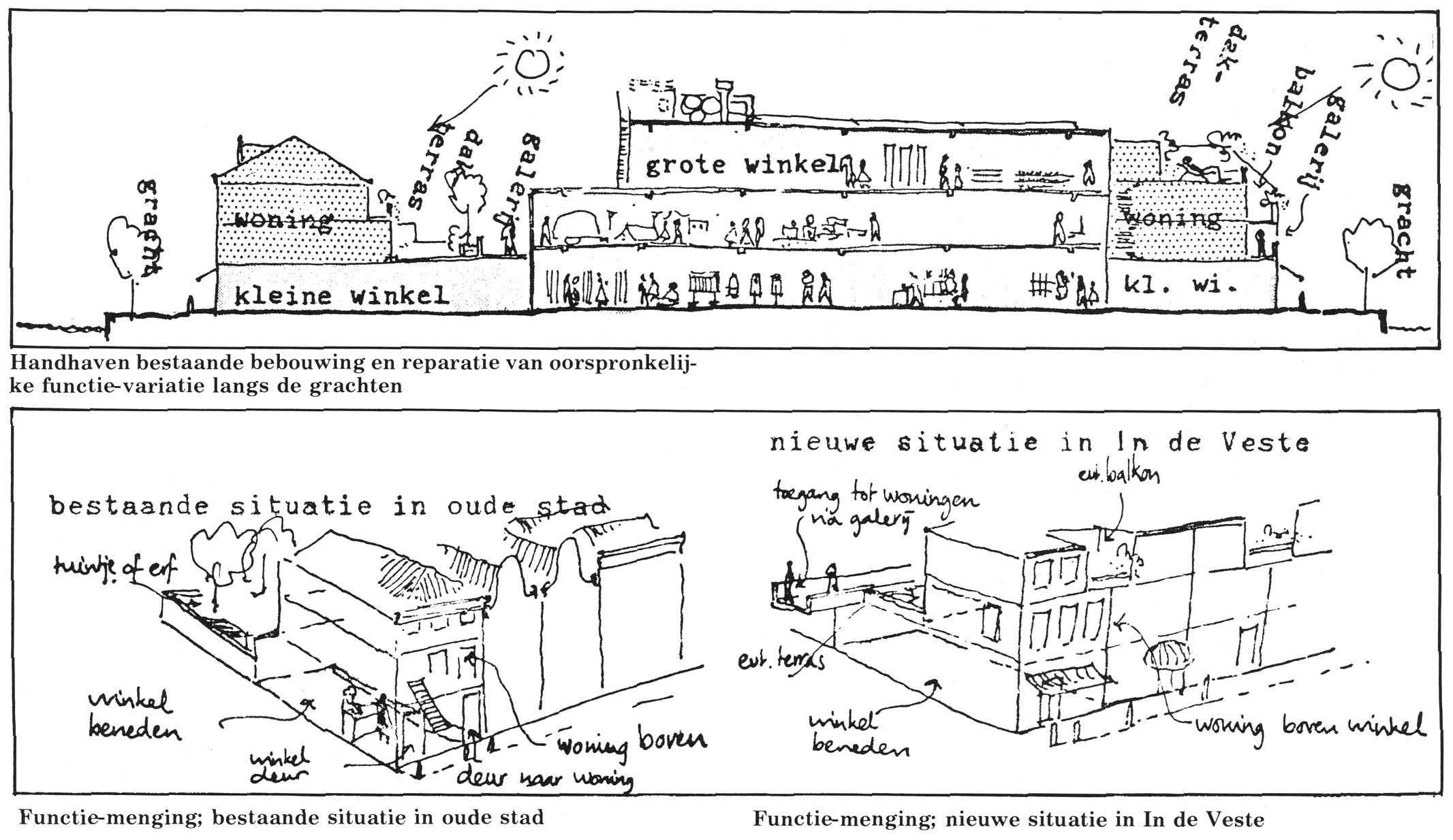 Rein Geurtsen is an important figure for Dutch urban analysis: as a teach and as an urban designer. This study was made for the munipality of Delft, who wanted to organise a design competition for a run-down area of the old inner city: the Zuidpoortgebied. As an introduction to the design teams and to establish a proper understanding of the area with all the parties, Geurtsen prepared this “urban morphological atlas”. It offers what you might call an illustrated history of the area for professionals: historical maps, analytical drawings, texts and photographs are combined to give insight into the relationship between city form and historical development. In the book, Geurtsen looks at two scale levels: the city as a whole and the Zuidpoort in detail. Here we present a selection from the second scale level.