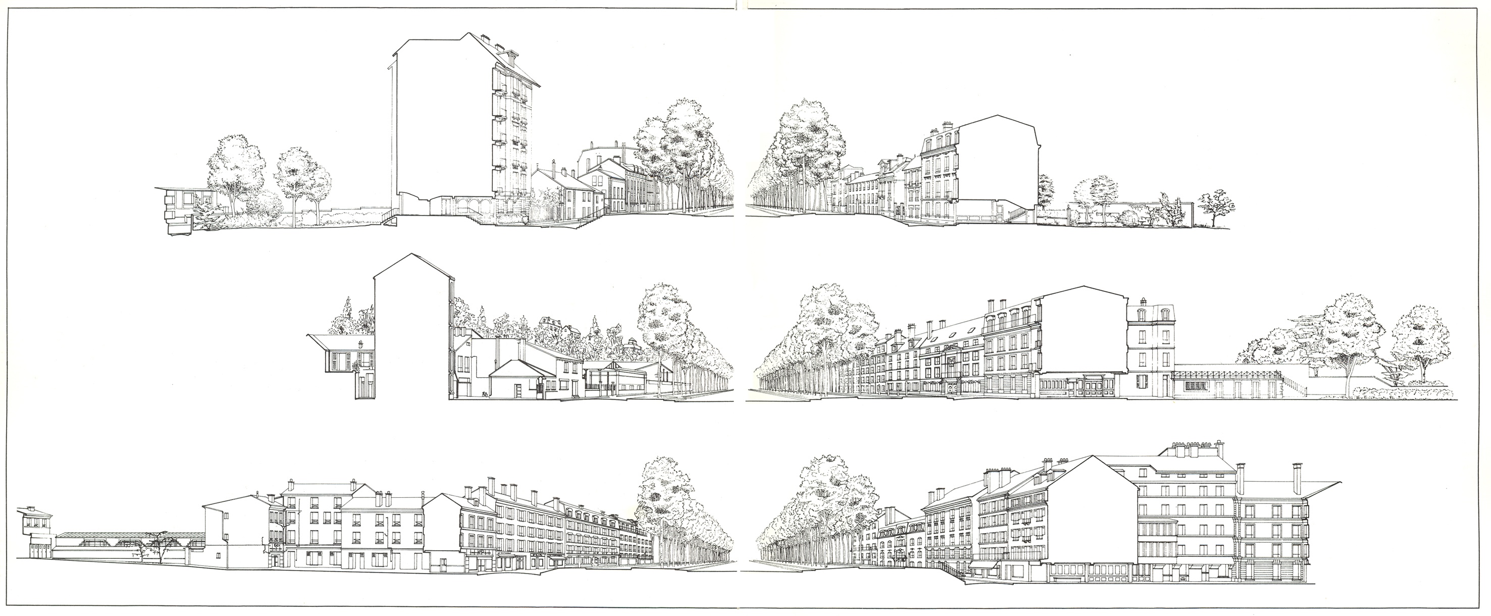 This is another example of a French School urban analysis. That means that apart from a number of introductory drawings on a larger scale, the emphasis is on building- and block typology. In addition to the palace, a large number of houses or “pavillons” were built in Versailles for the nobility and government officials. These were all based on the same typology, resulting in a very regular and formal urban environment (fig. 4). Although there were many variants of these houses and many have been extended or modified, the basic module is still recognisable. The book shows this basic module and some of its variants and characteristic details. Figs. 7-10 show how streets, squares and blocks were constructed from this. This urban layout has also survived, even though the tissue has become denser (fig.8). Especially fig. 11 is interesting because it clearly shows that a street is more than just the “white” in the map.